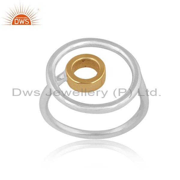 Handmade Gold On Fine 925 Silver Double Rings Designer Ring