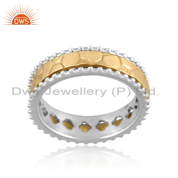 Handmade Gold On Fine 925 Silver Flat Tape Impressed Ring