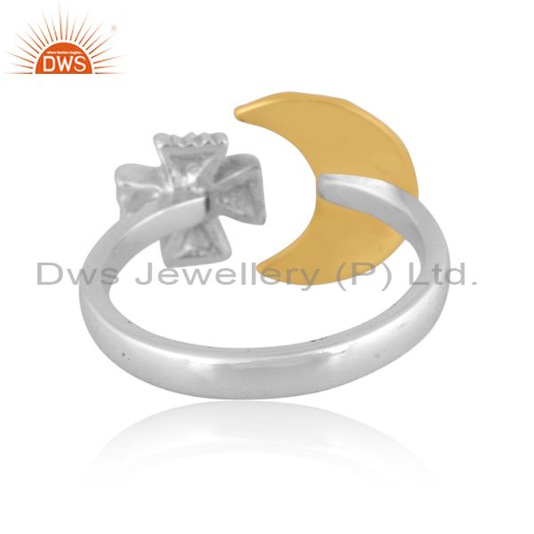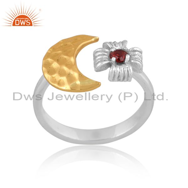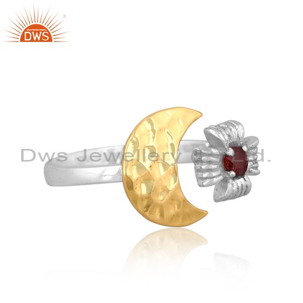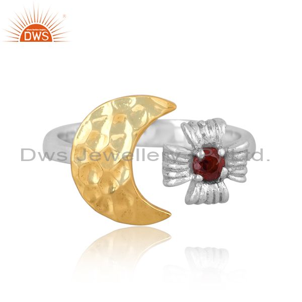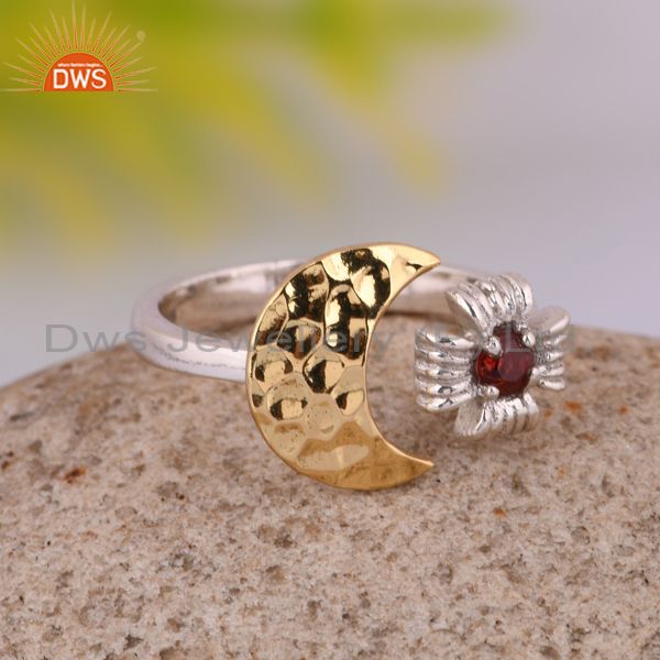Handmade Gold On Fine 925 Silver Garnet Set Moon Charm Ring