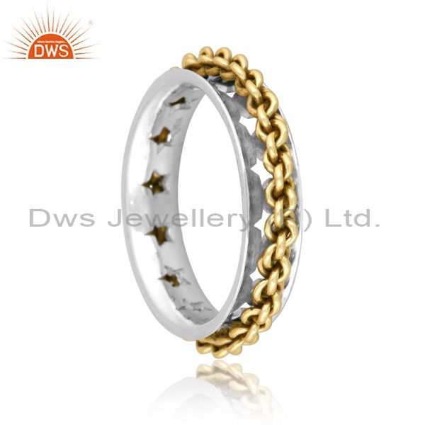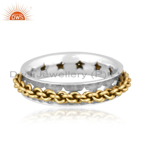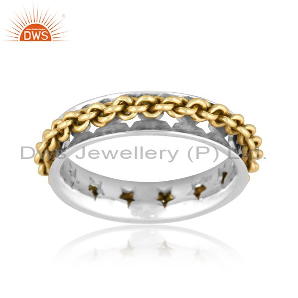 Handmade Gold On Fine 925 Sterling Silver Chain Pattern Ring