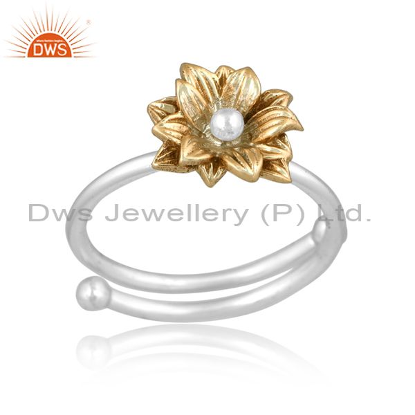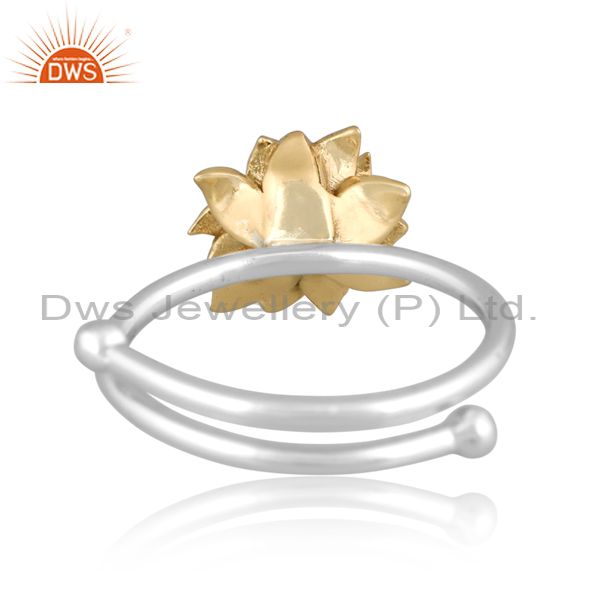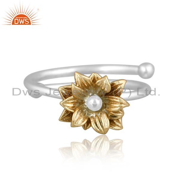 Handmade Gold On Fine 925 Sterling Silver Floral Design Ring