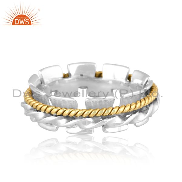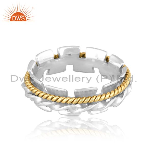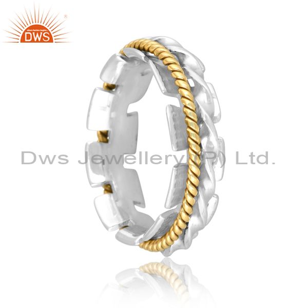 Handmade Gold On Fine 925 Sterling Silver Twist Pattern Ring