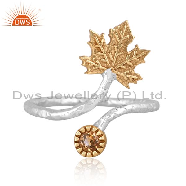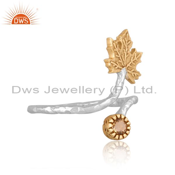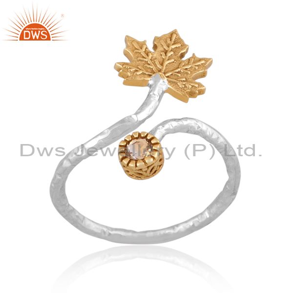 Handmade Gold On Fine Silver Citrine Floral Designer Ring