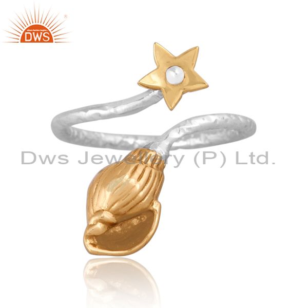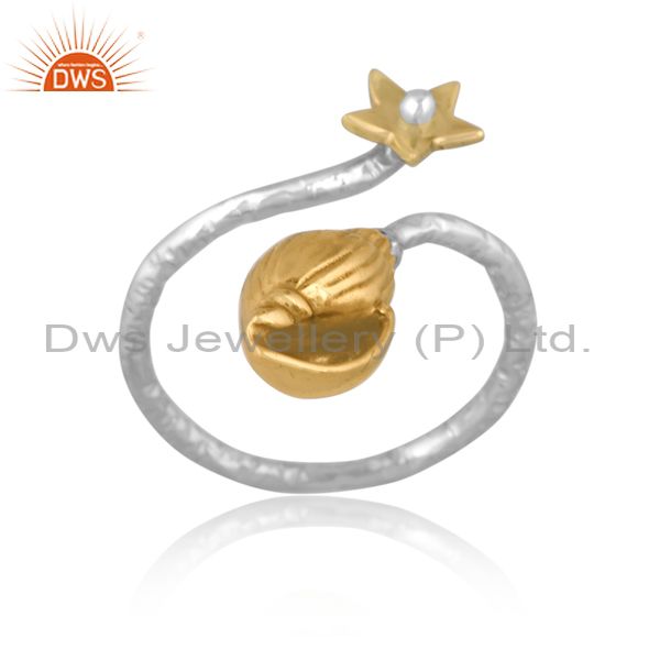 Handmade Gold On Fine Silver Classic Floral Designer Ring