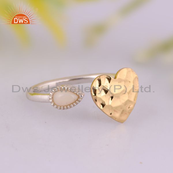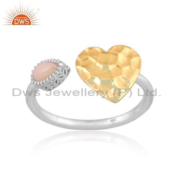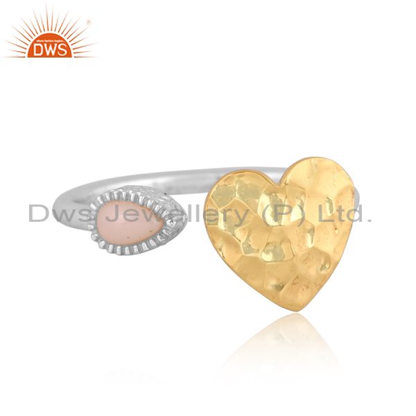 Handmade Gold On Fine Silver Ethiopian Opal Set Heart Ring