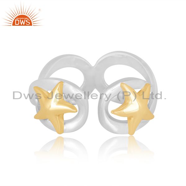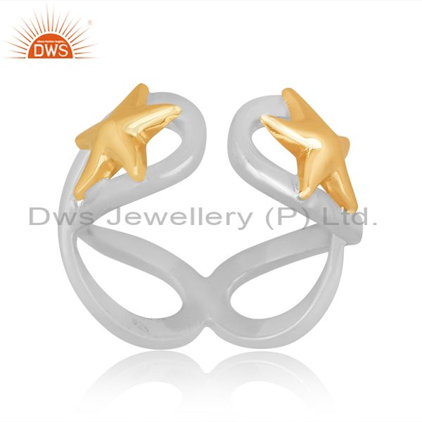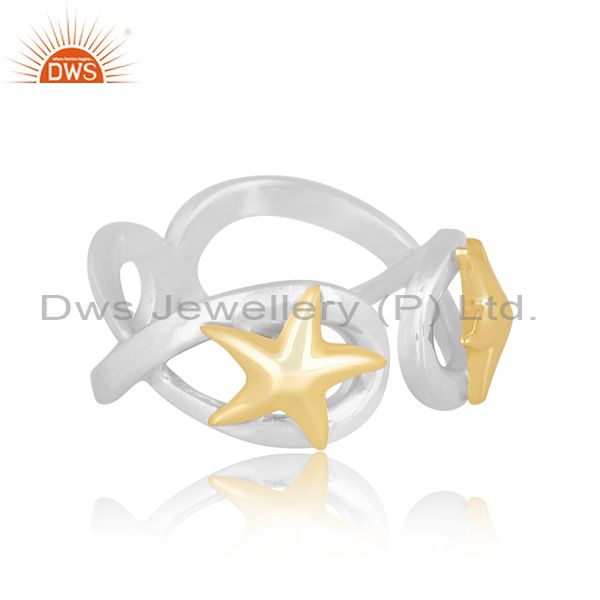 Handmade Gold On Fine Silver Star Charm Abstract Design Ring