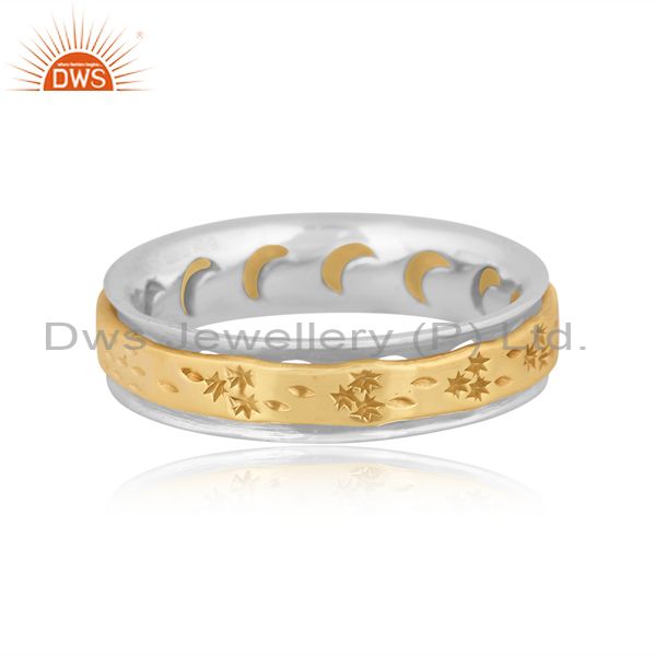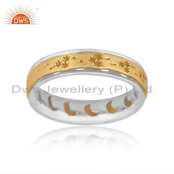 Handmade Gold On Fine Sterling Silver Textured Designer Ring