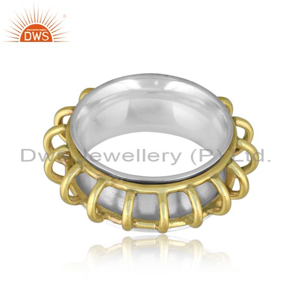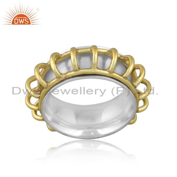 Handmade Gold On Fine Sterling Silver Twist Design Band Ring