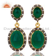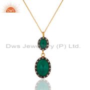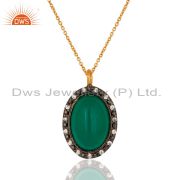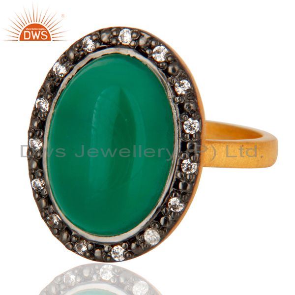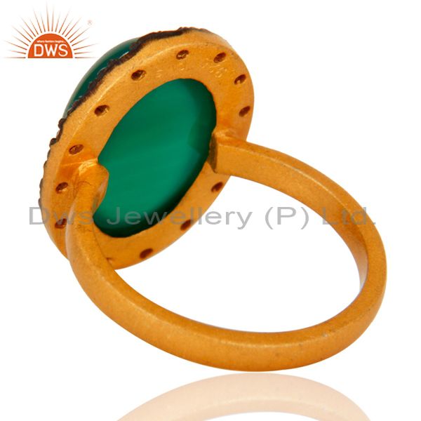 Handmade Green Onyx Cabochon Gemstone 925 Sterling Silver 24K Gold Plated Ring