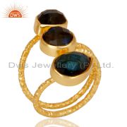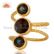 Handmade Labradorite 18K Gold Plated Sterling Silver Stackable Ring