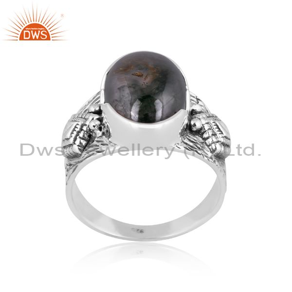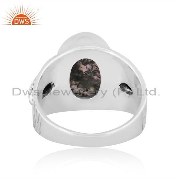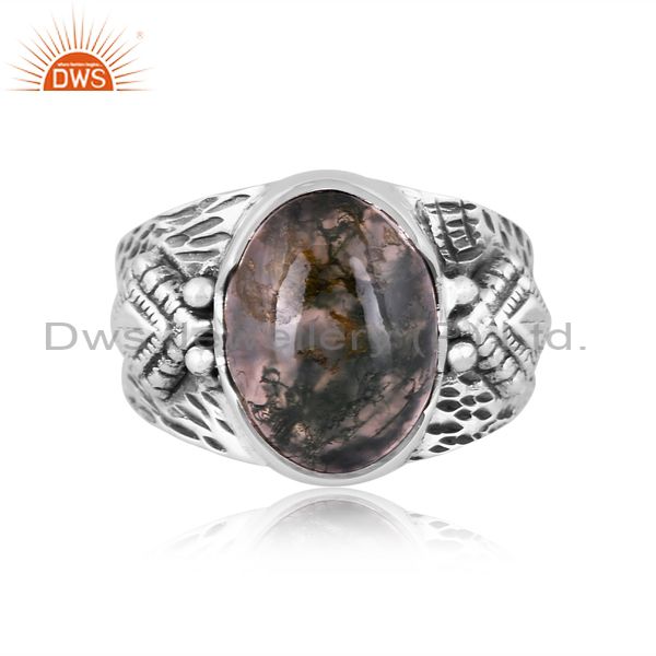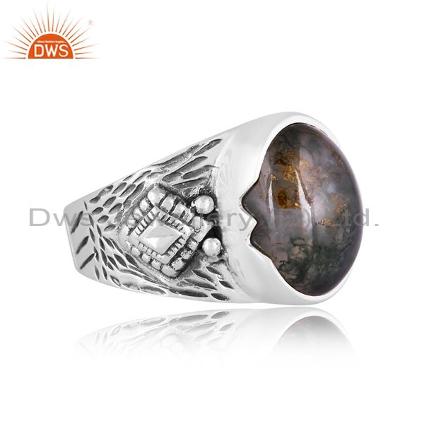 Handmade Moss Agate Set Oxidized Sterling Silver Ethnic Ring