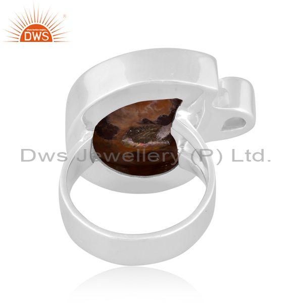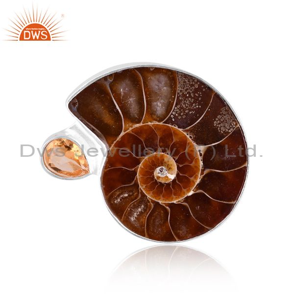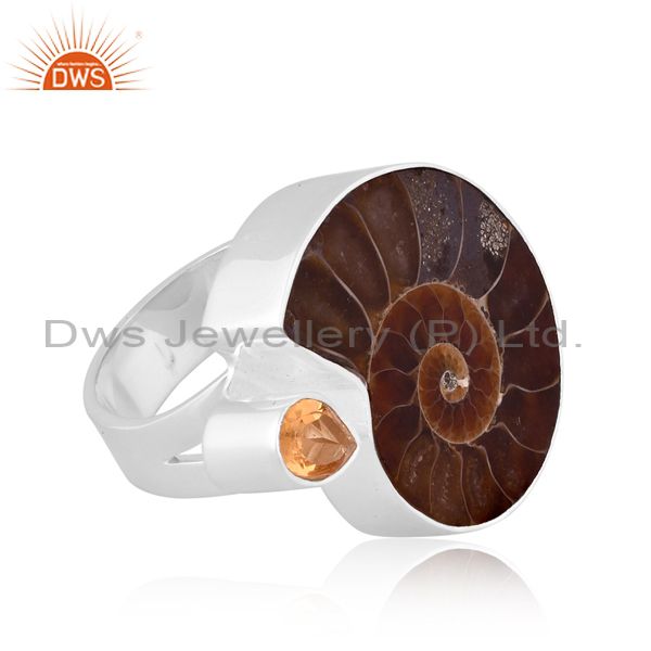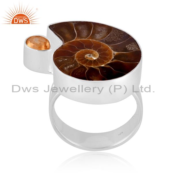 Handmade Natural Ammonite & Pear Cut Citrine 925 Sterling Silver Statement Ring