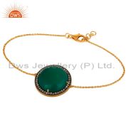 Handmade Natural Green Onyx Gemstone Ring Made In 22K Gold Plated 925 Silver