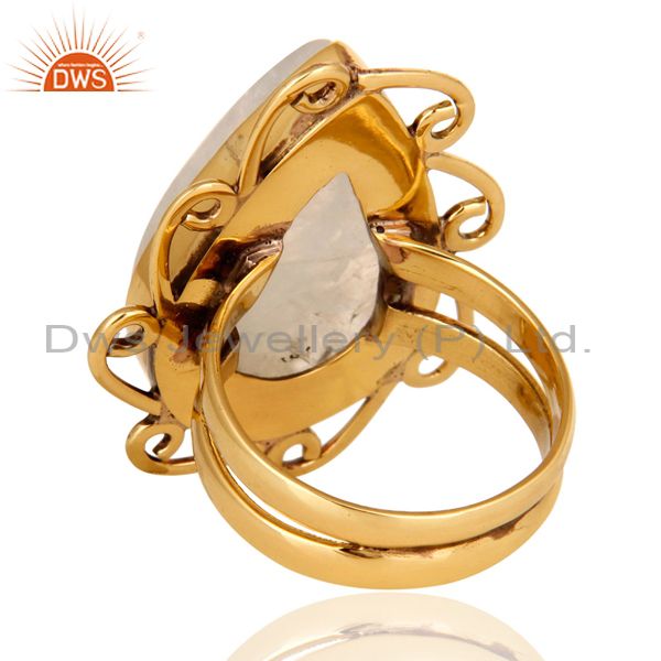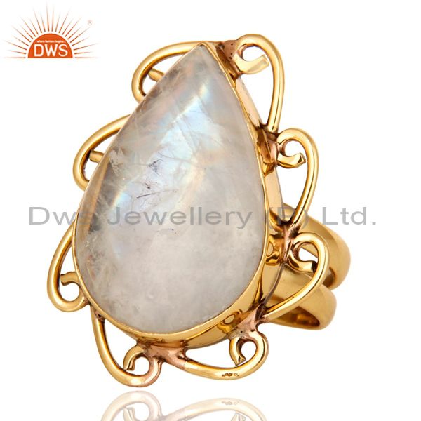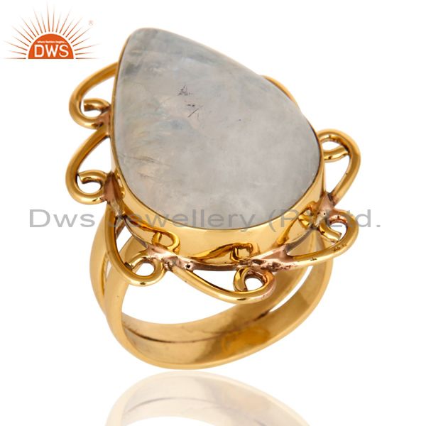 Handmade Natural Rainbow Moonstone Ring - Yellow Gold Plated