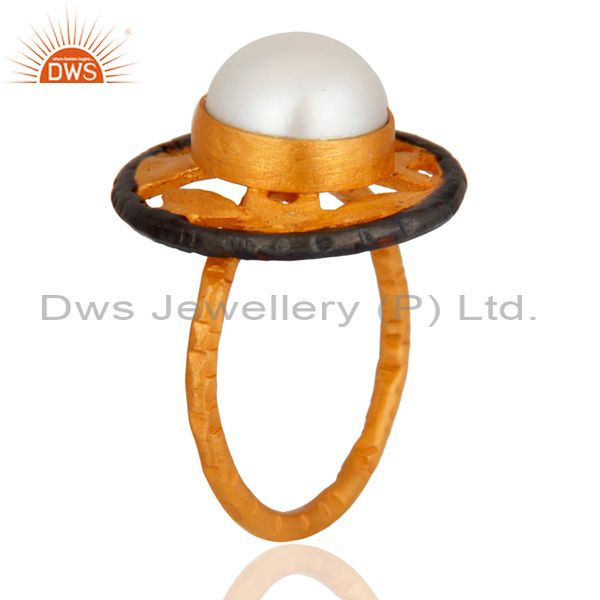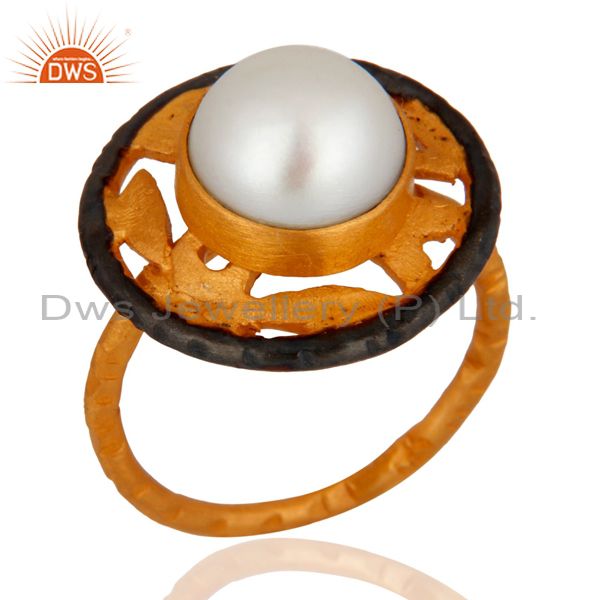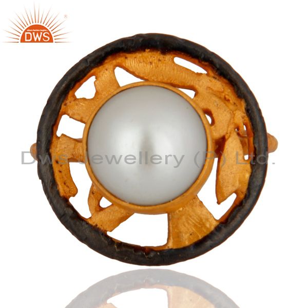 Handmade Natural White Pearl Cocktail Ring Made In 22K Yellow Gold Over Brass