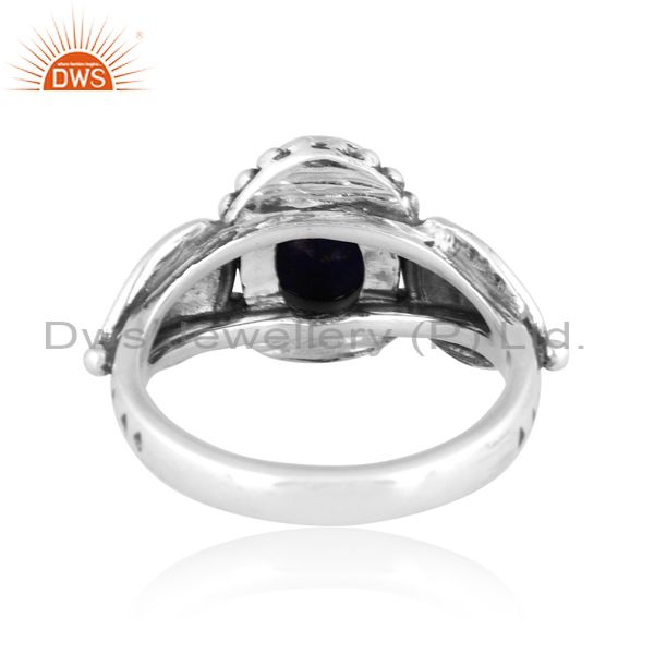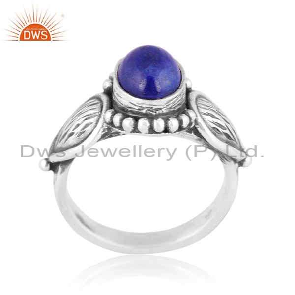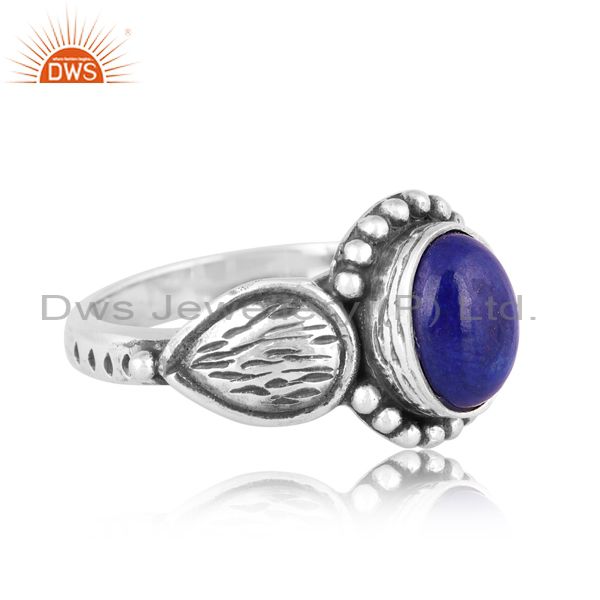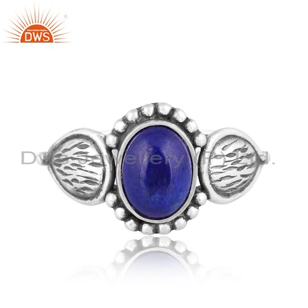 Handmade Oval Cut Lapis Set Oxidized 925 Silver Boho Ring
