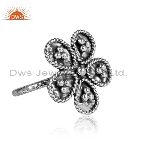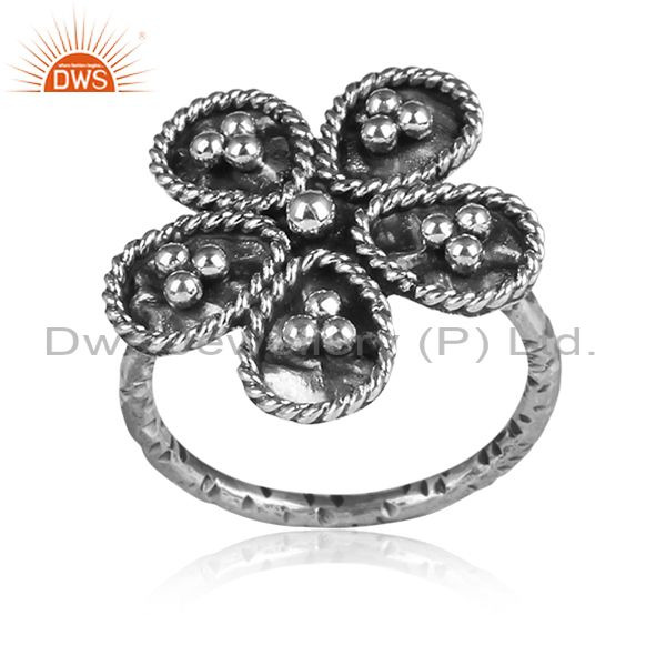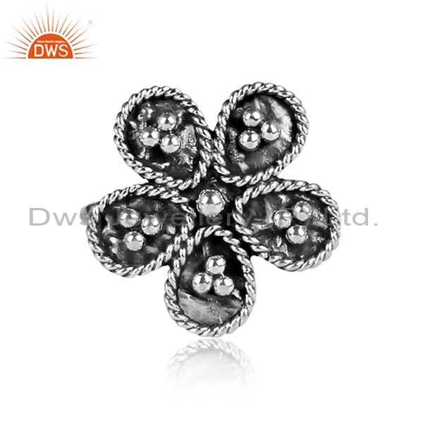 Handmade Oxidized 925 Silver Floral Designer Statement Ring