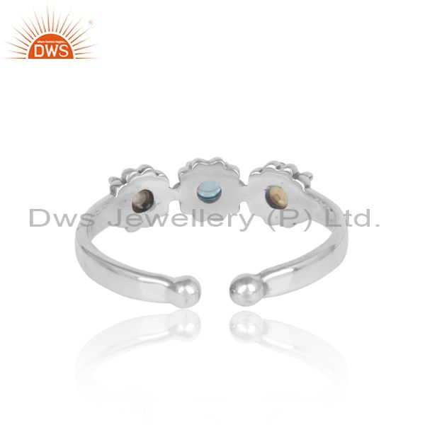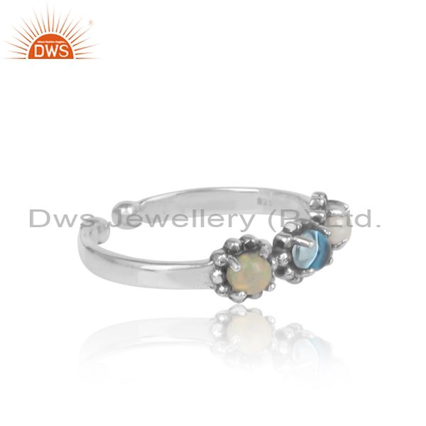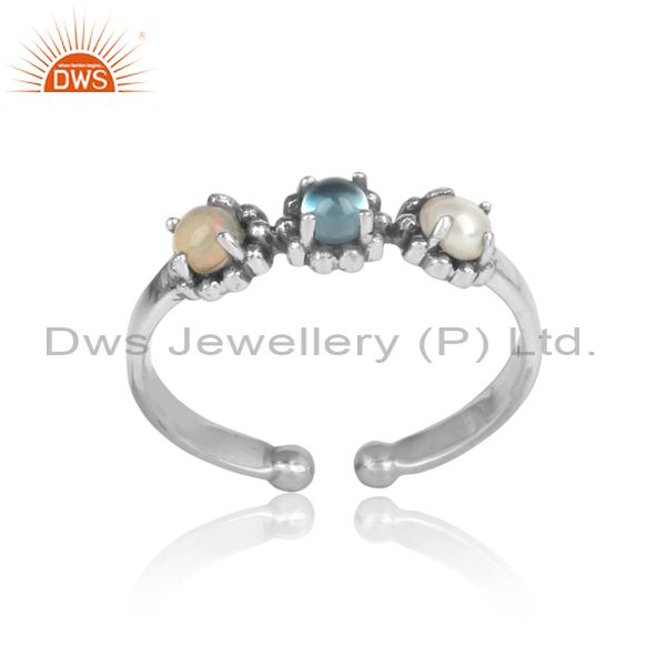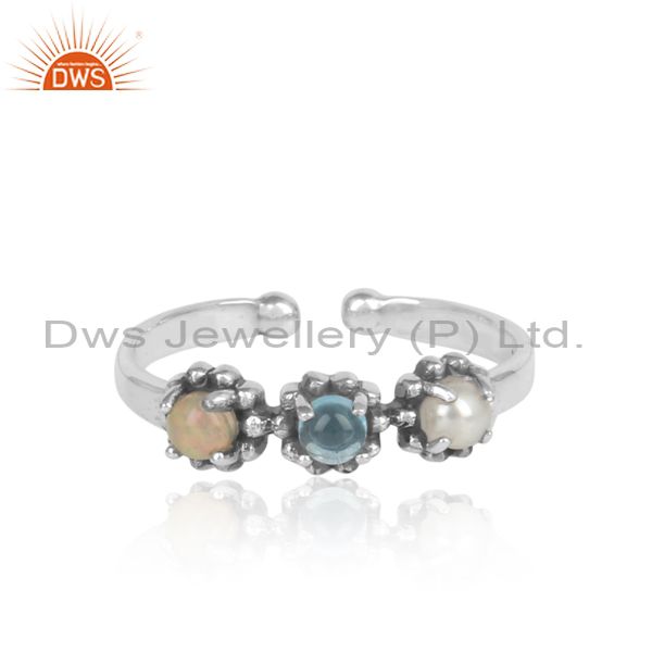 Handmade Oxidized Silver Pearl, Ethiopian Opal, Blue Topaz Ring
