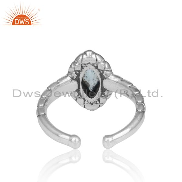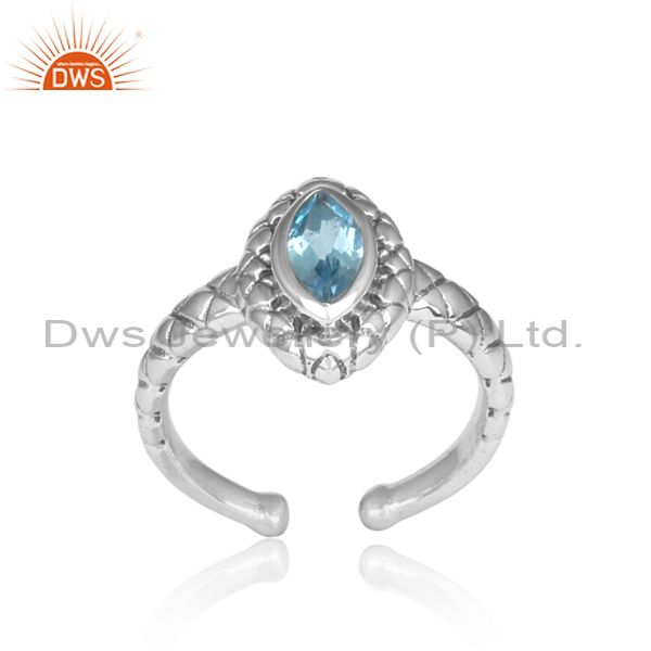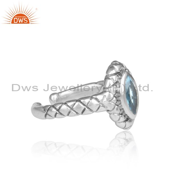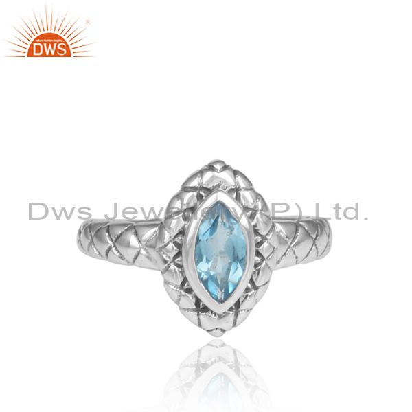 Handmade Pear Blue Topaz Set Oxidized Silver Pattern Ring