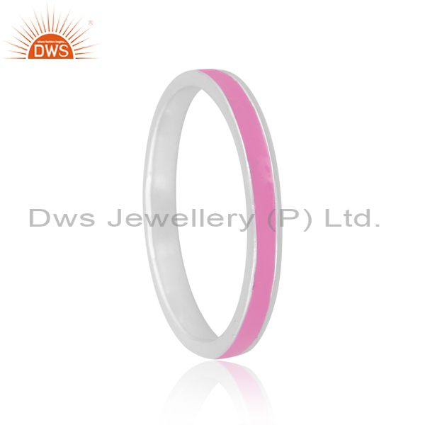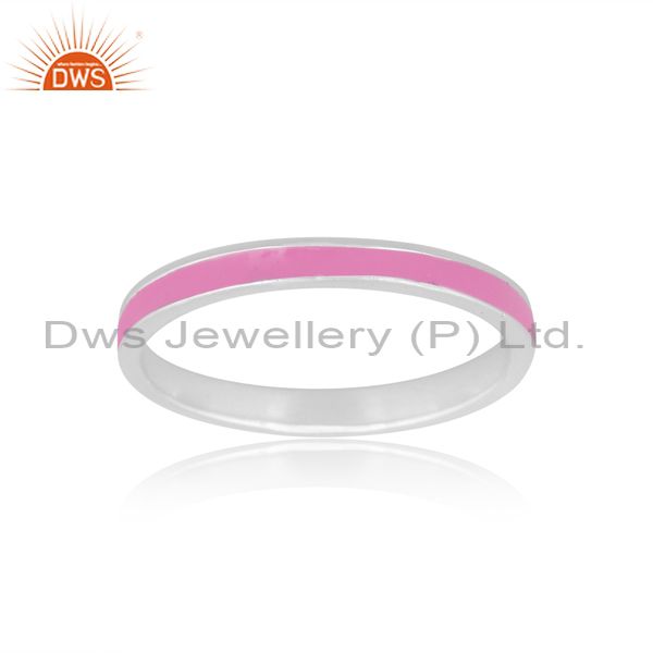 Handmade Pink Enamel Fine 925 Silver Statement Band Ring
