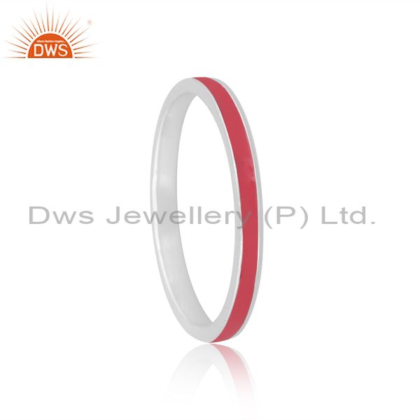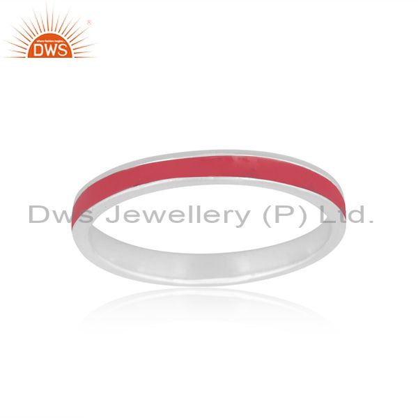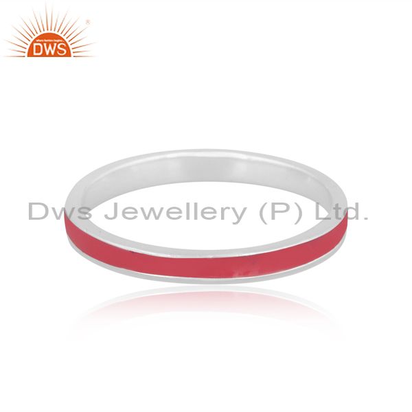 Handmade Red Enamel Fine 925 Silver Statement Band Ring
