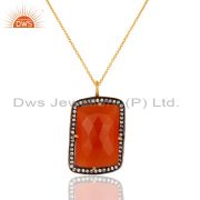 Handmade Red Onyx Faceted Semi-Precious Stone Gold Plated Sterling Silver Ring
