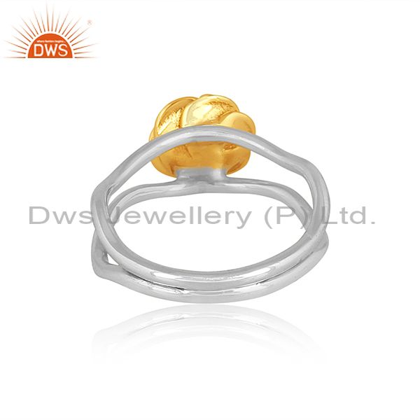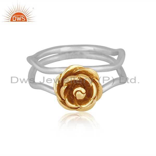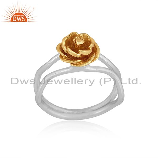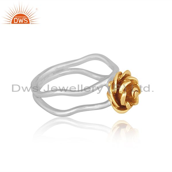 Handmade Rose Charm Set Gold On Fine Silver Designer Ring