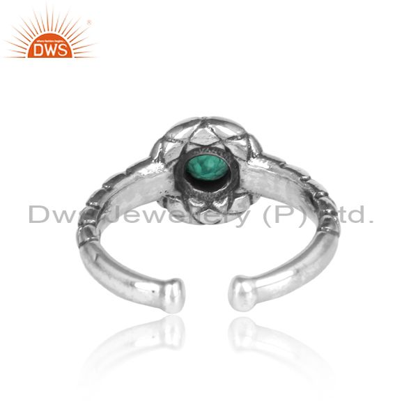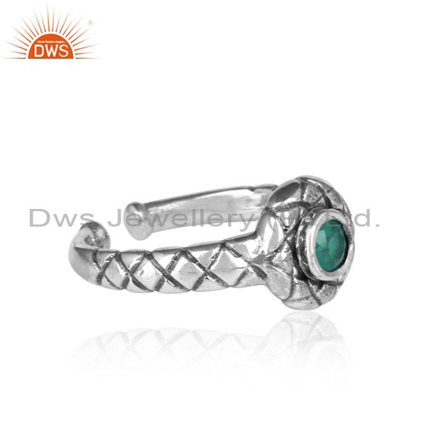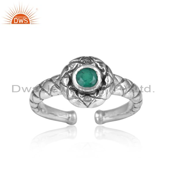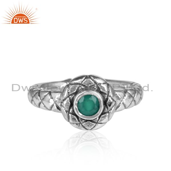 Handmade Round Cut Green Onyx Oxidized Silver Pattern Ring