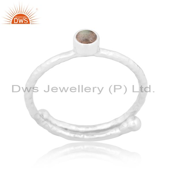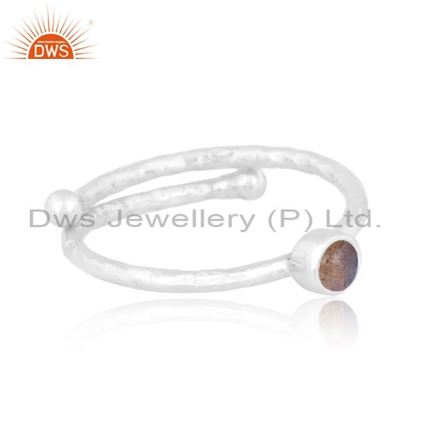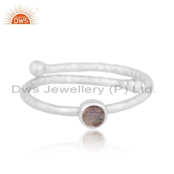 Handmade Round Cut Labradorite Set Fine Sterling Silver Ring