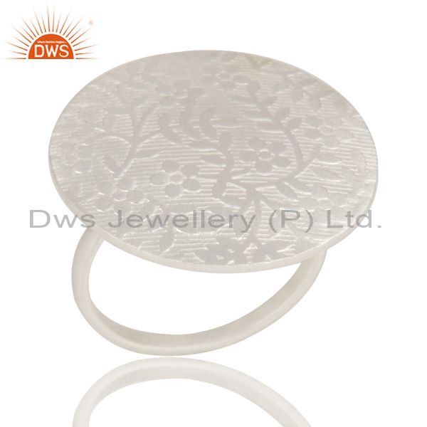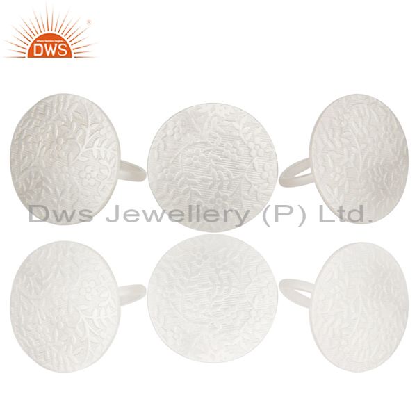 Handmade Silver Plated Brass Floral Engraved Set Of 3 Cocktail Ring