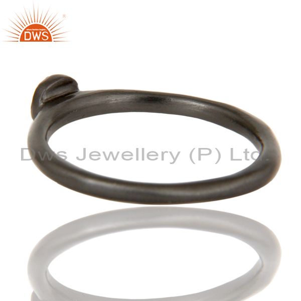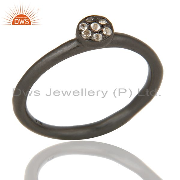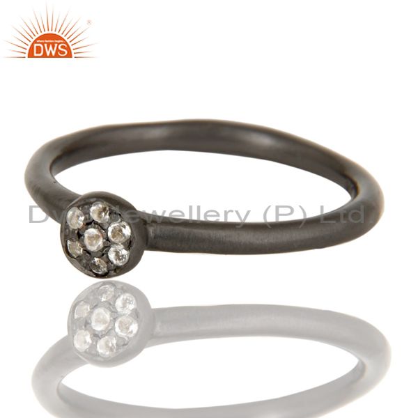 Handmade Simple Setting Black Oxidized Sterling Silver Ring with White Topaz