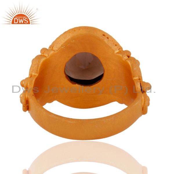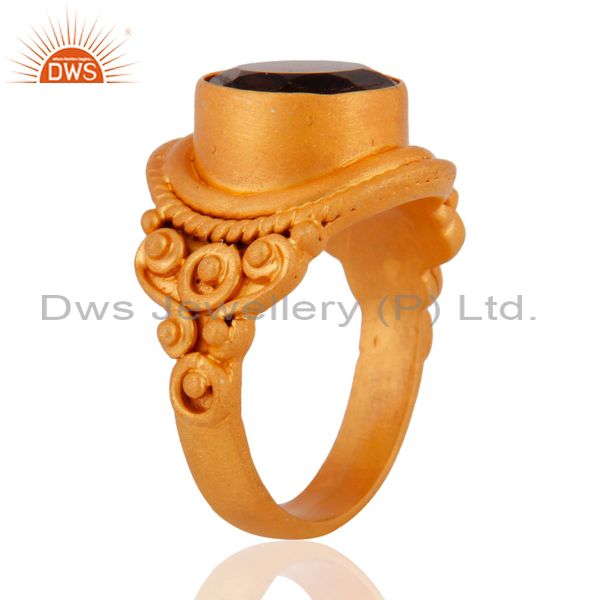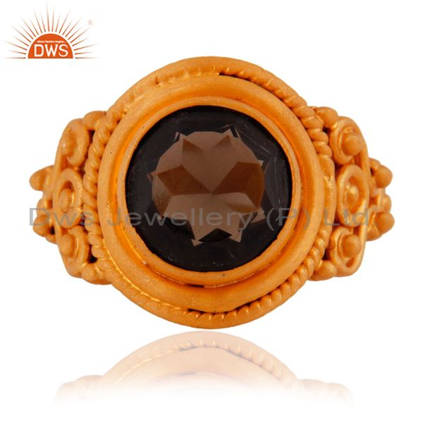 Handmade Smoky Quartz 925 Sterling Silver 18K Yellow Gold Plated Gemstone Ring