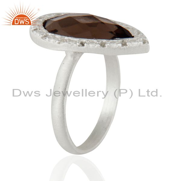Handmade Smoky Quartz And Cubic Zirconia Sterling Silver Ring