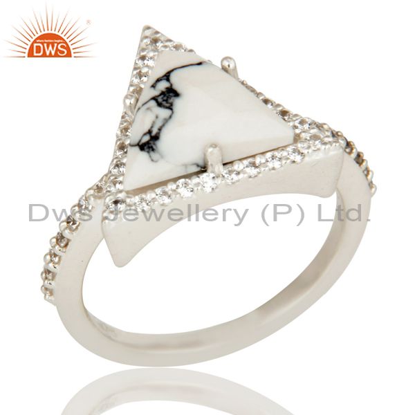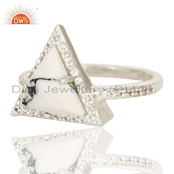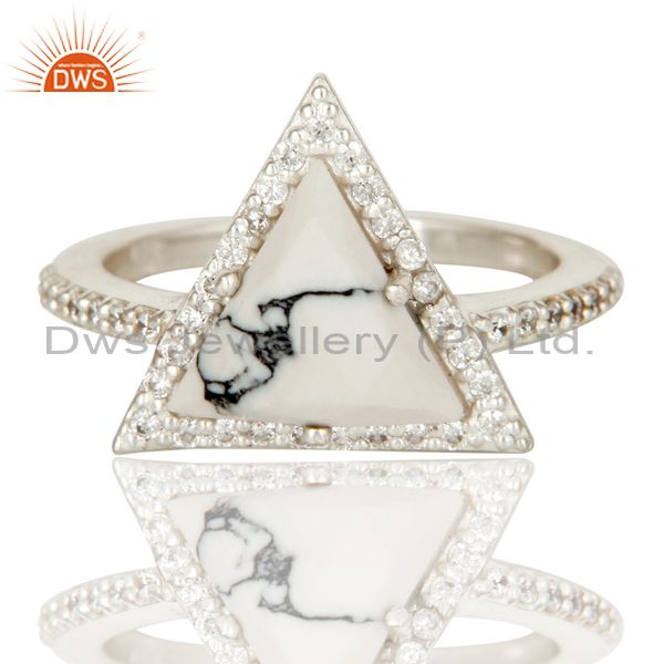 Handmade Solid 925 Sterling Silver White Howlite & White Zirconia Statement Ring