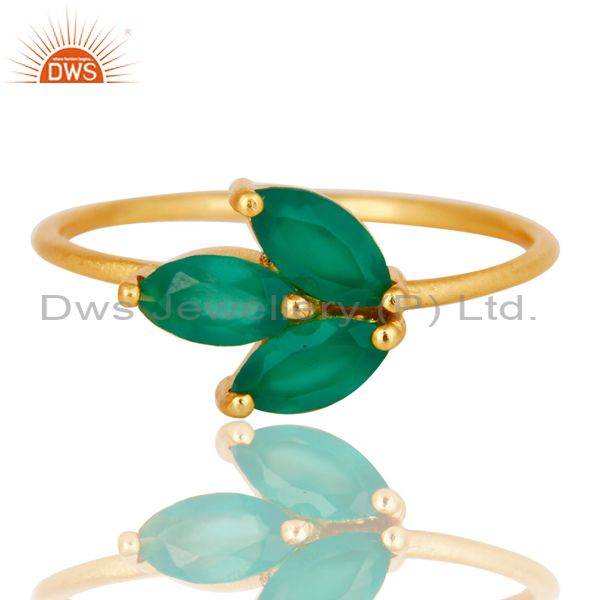 Handmade Solid Sterling Silver Green Onyx Prong Set Stackable Ring