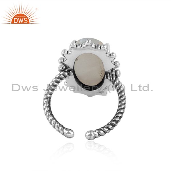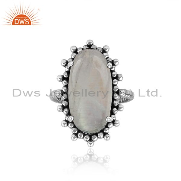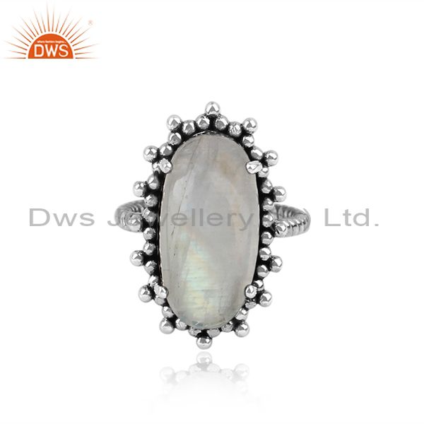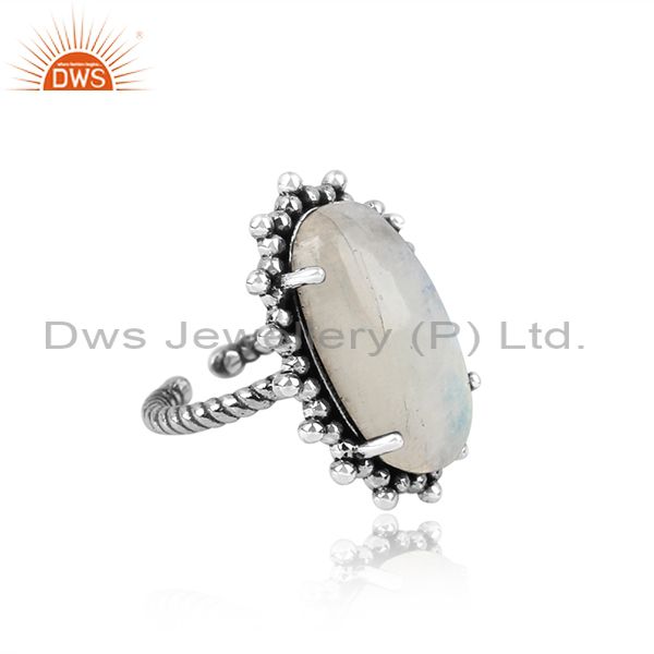 Handmade Statement Rainbow Moonstone Ring in Oxidized Silver 925
