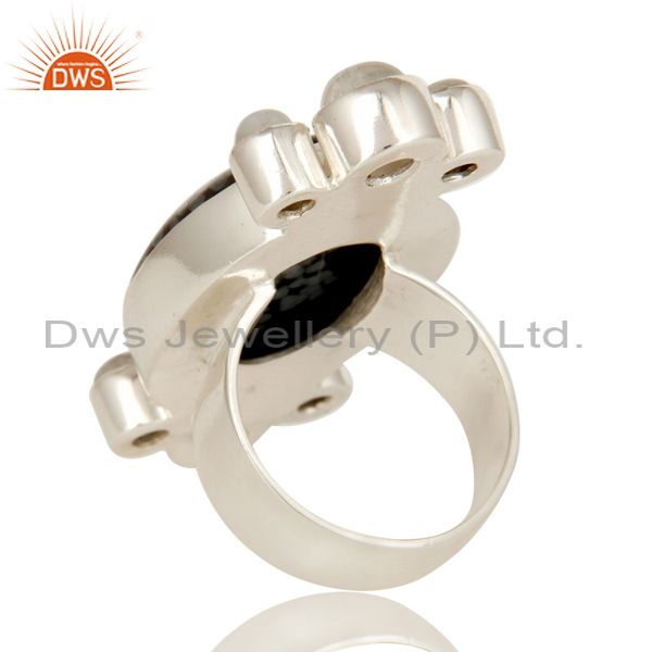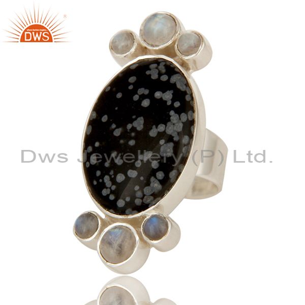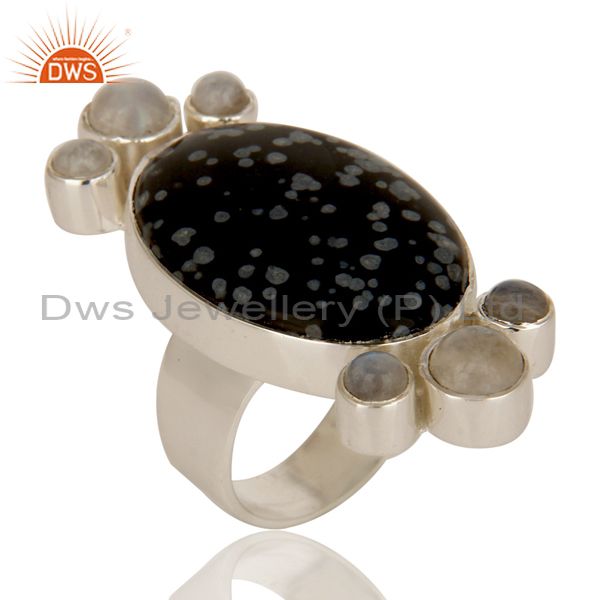 Handmade Sterling Silver Black Obsidian And Rainbow Moonstone Statement Ring