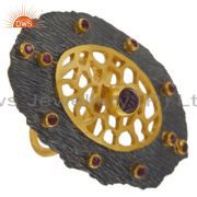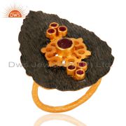 Handmade Sterling Silver Natural Ruby Gemstone Cocktail Ring - Gold Plated