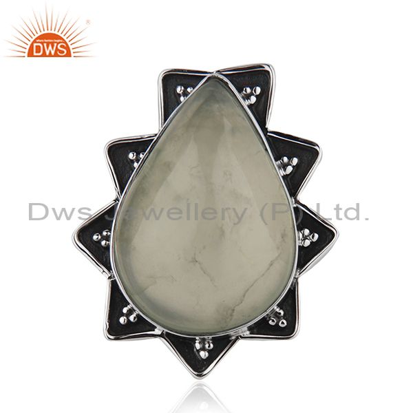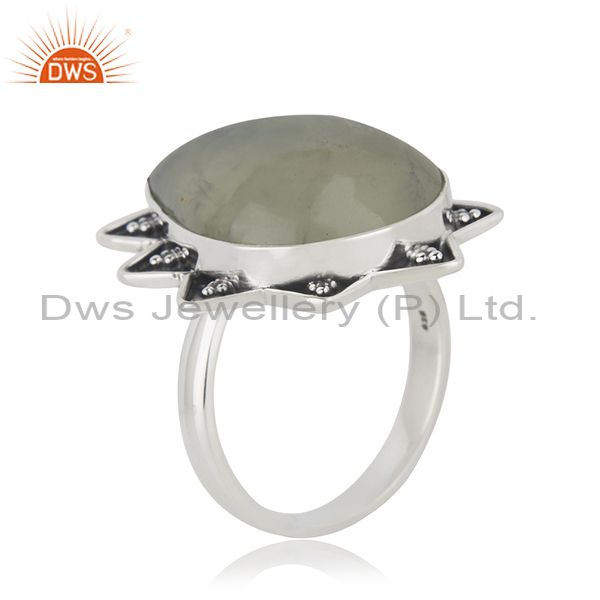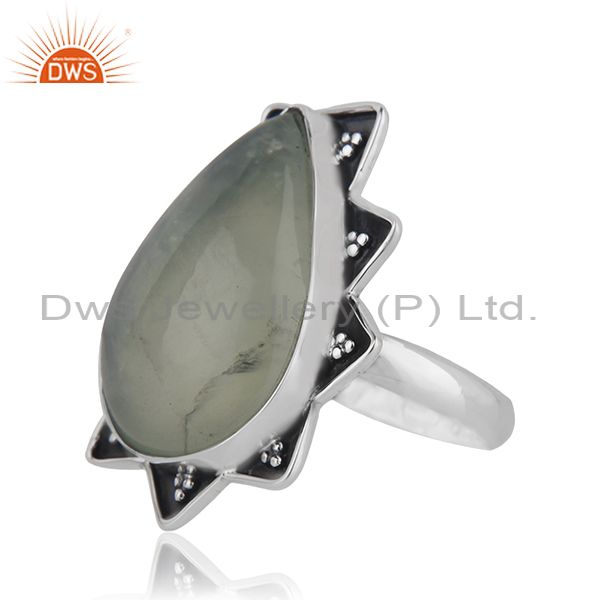 Handmade Sterling SIlver Oxidized Prehnite Gemstone Ring Jewelry