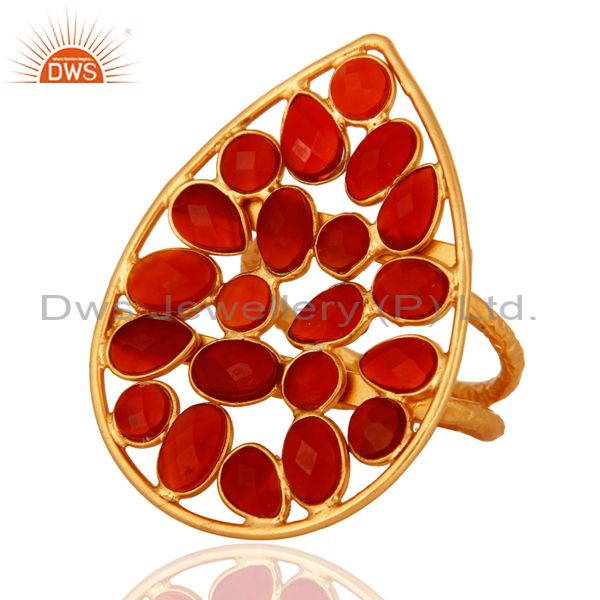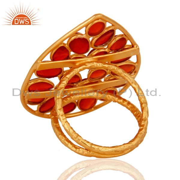 Handmade Sterling Silver With Yellow Gold Plated Red Onyx Gemstone Ring