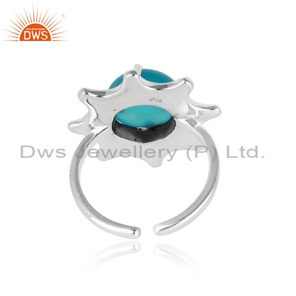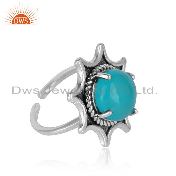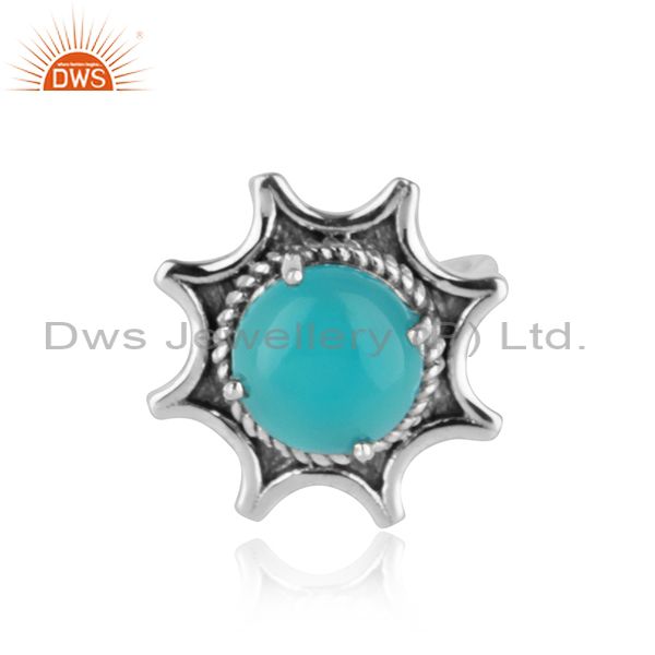 Handmade Sunburst Oxidized Silver 925 Ring With Aqua Chalcedony