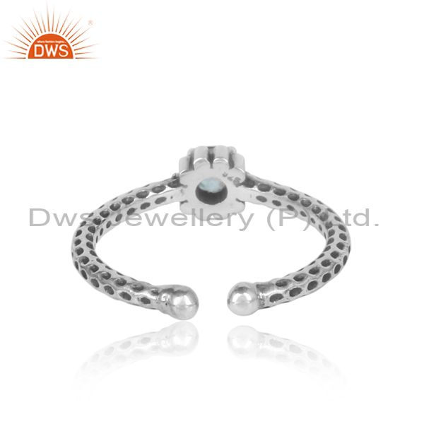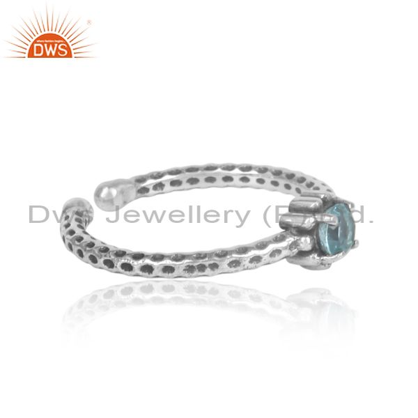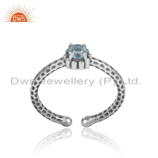 Handmade Textured Dainty Oxidized Silver 925 Blue Topaz Ring