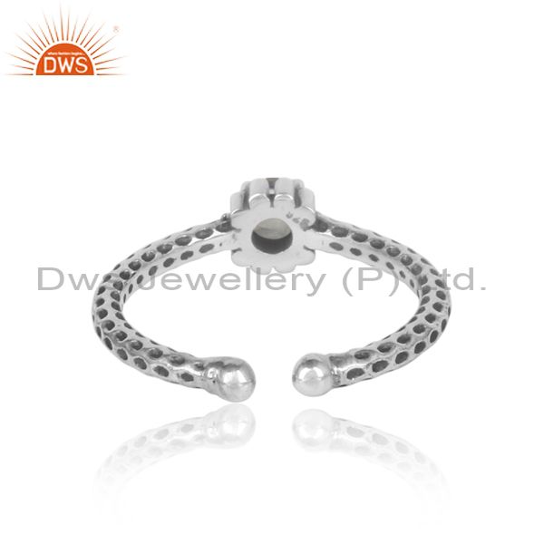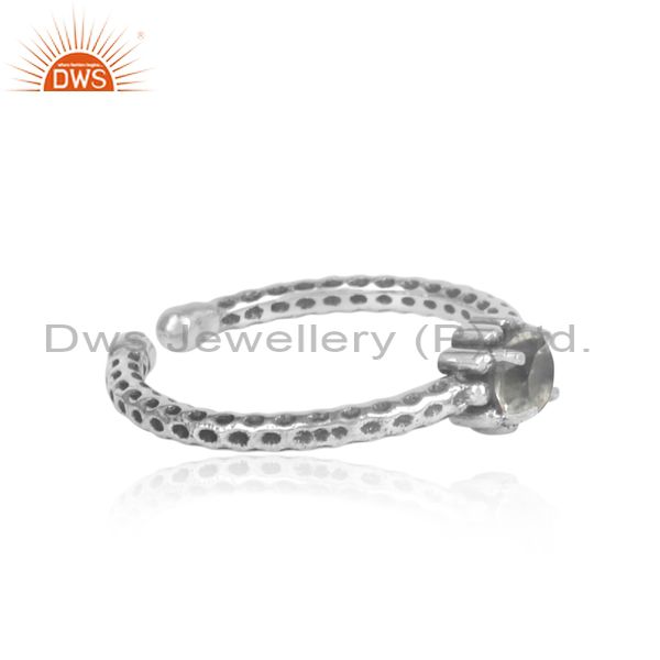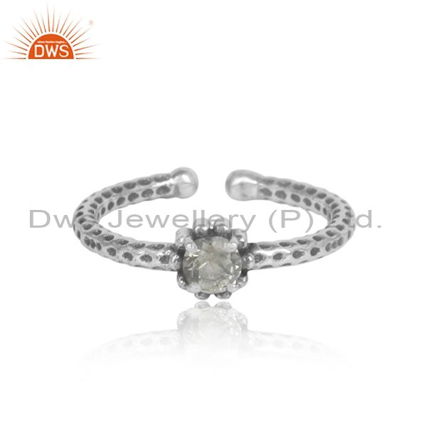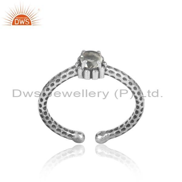 Handmade Textured Dainty Oxidized Silver Green Amethyst Ring