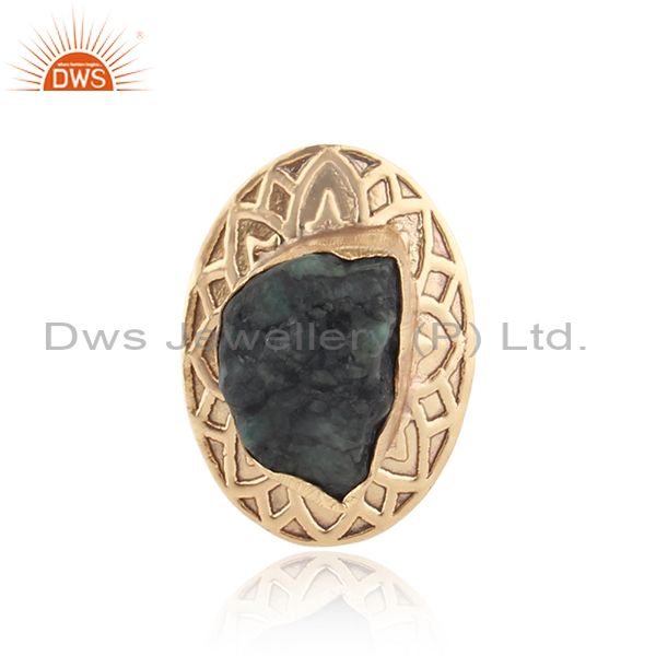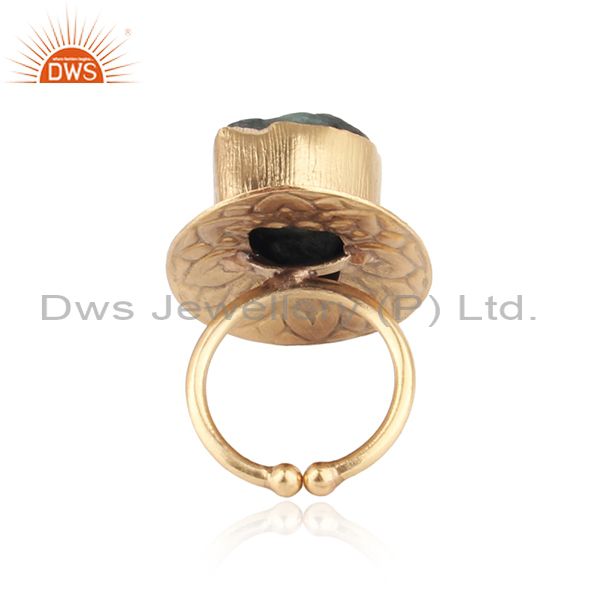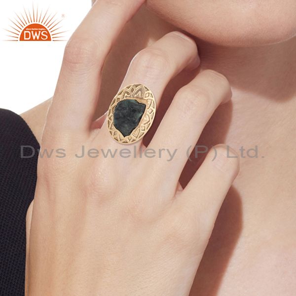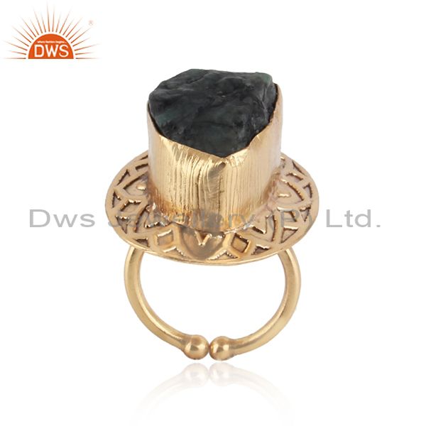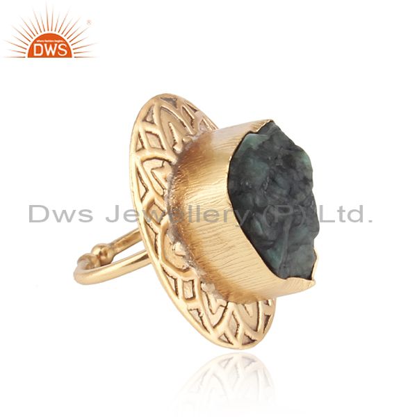 Handmade Textured Gold On Fashion Ring With Rough Emerald