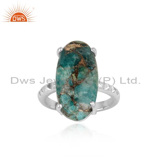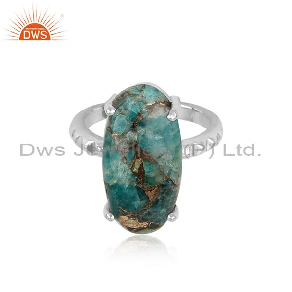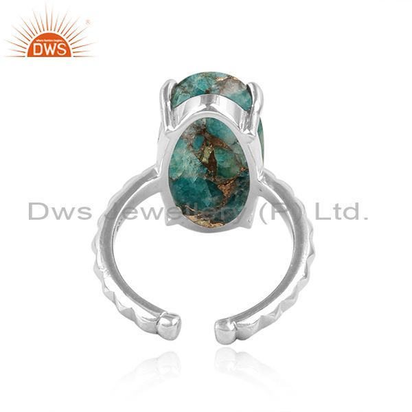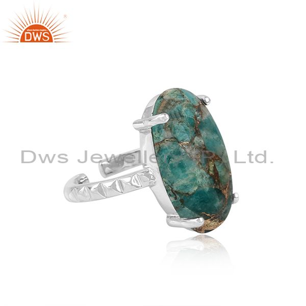 Handmade Textured Oxidized Silver 925 Ring with Mohave Amazonite