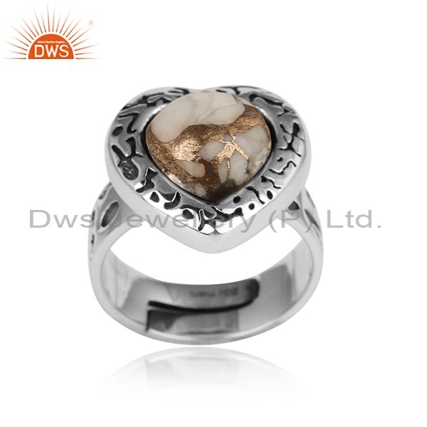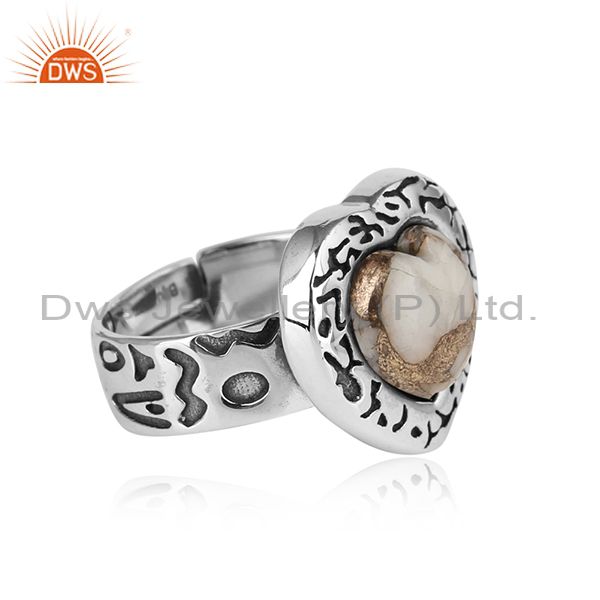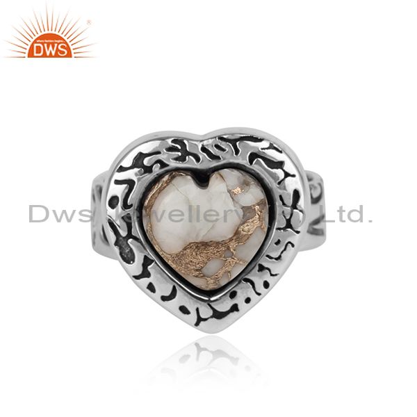 Handmade Textured Oxidized Silver 925 Ring with Mohave Howlite