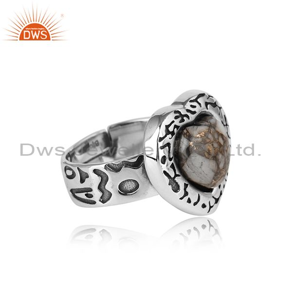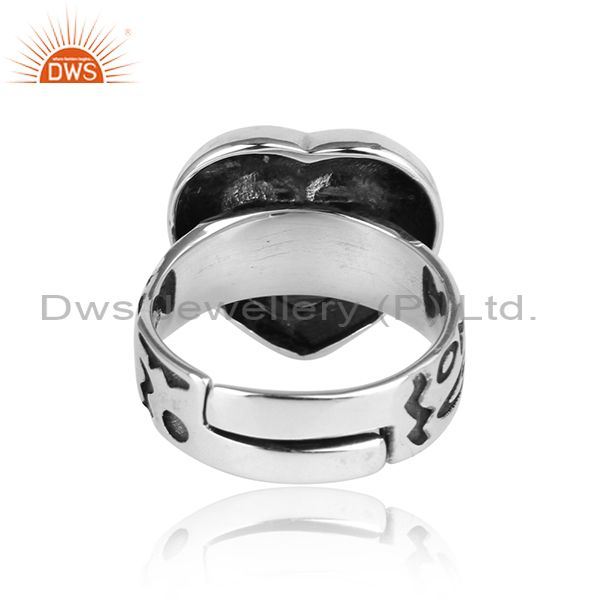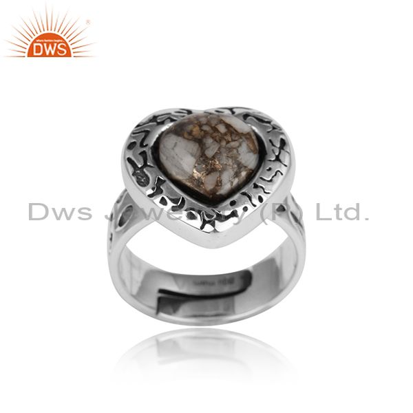 Handmade Textured Oxidized Sterling Silver Ring with Mohave Opal