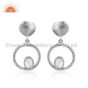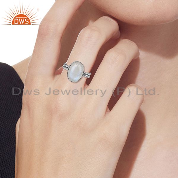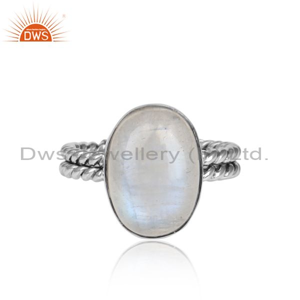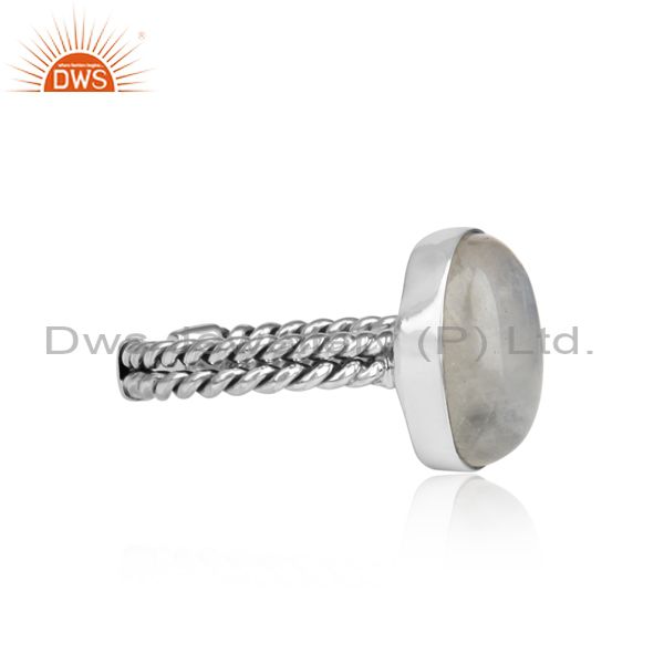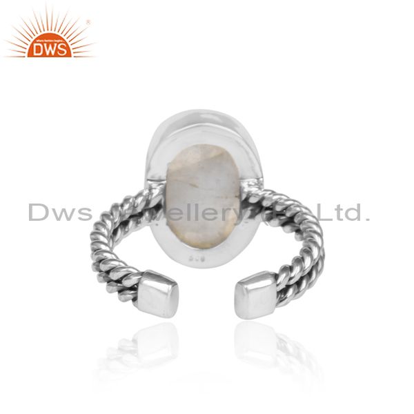Handmade Twisted Rope Shank Oxidized Silver Rainboe Moonstone Ring