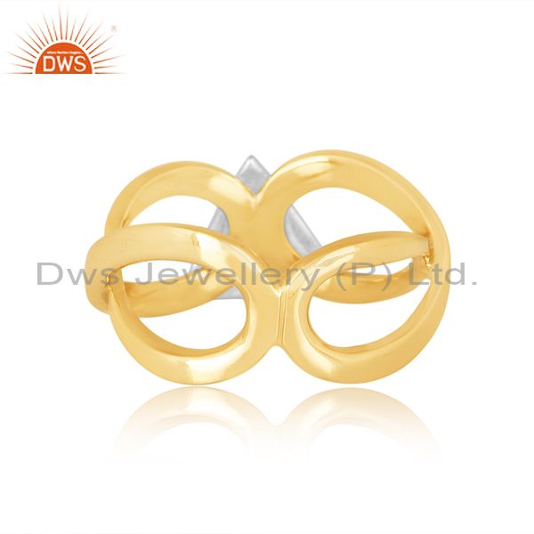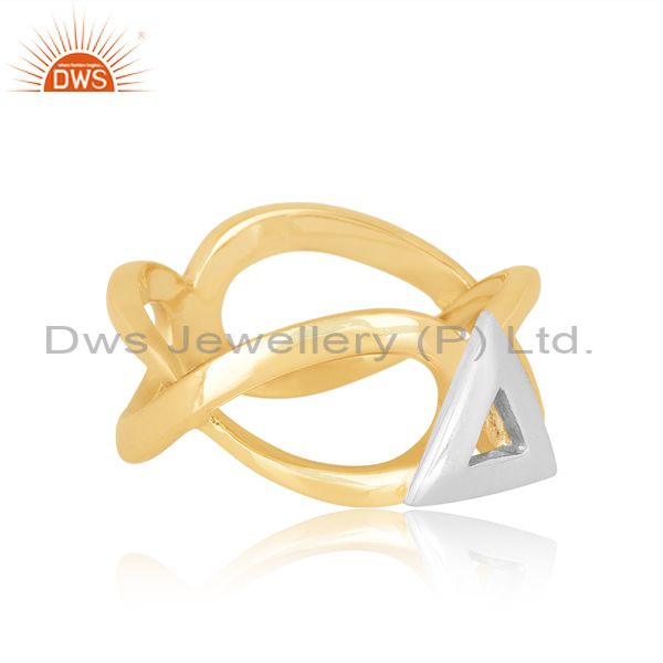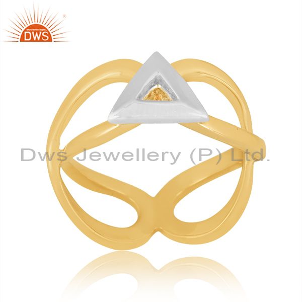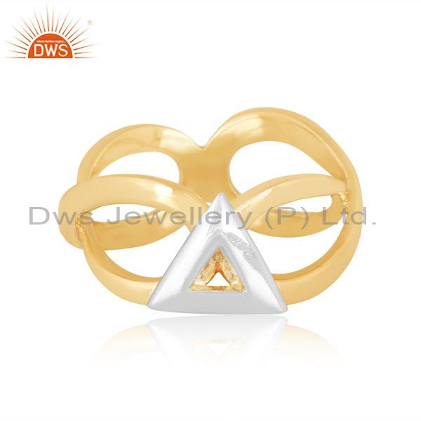 Handmade White On Brass Gold Triangle Charm Abstract Ring