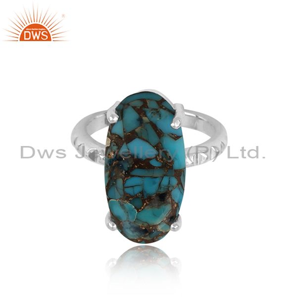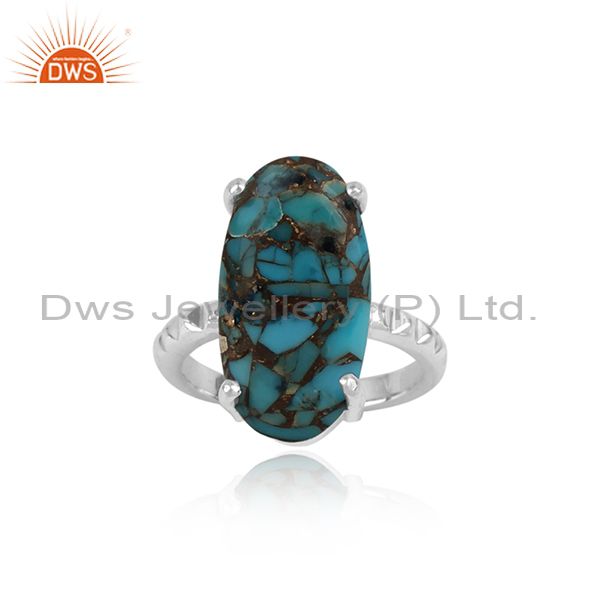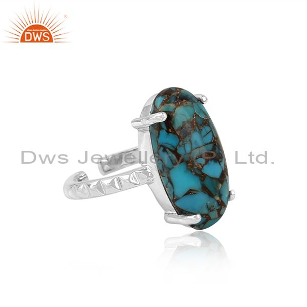 Handtextured Bold Sterling Silver Ring with Mohave Arizona Turquoise
